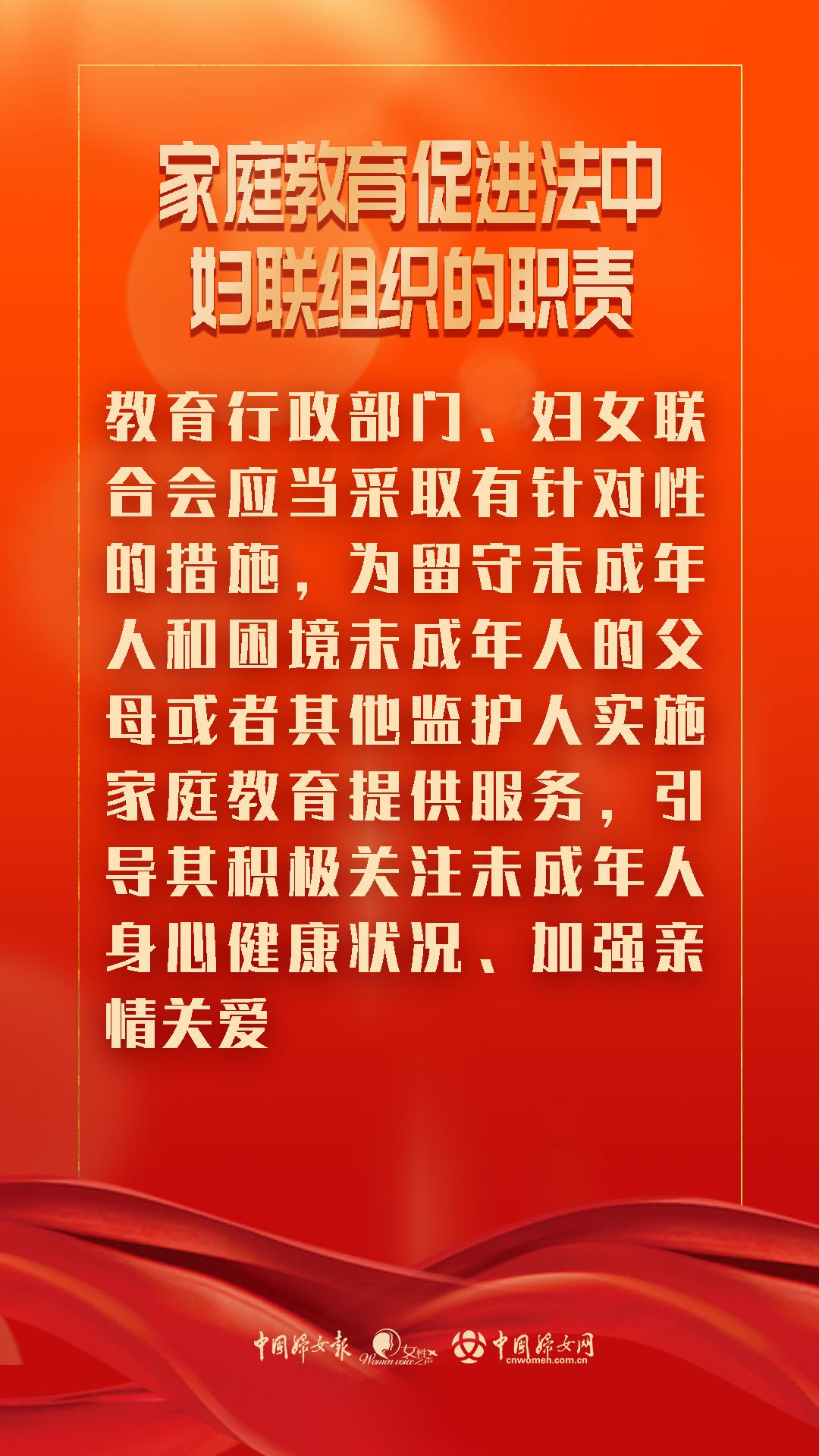 原标题:《一组图带你了解家庭教育促进法中妇联组织的职责》