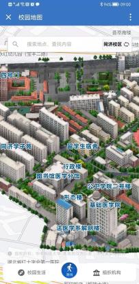校园电子地图涵盖了7000余亩校园的实景三维、精修三维、正射影像、二维地图、2.5维地图等5种地图形式,并在二维地图上叠加了294栋教学办公建筑物的楼层平面图,梳理出校园地名地址数据50161个,房间数据建库49142间,提供餐饮、购物、银行等244个详细的生活类位置服务,学院、机关部处、直属单位、附属单位等92个校内组织机构位置信息,绘制路网116公里。