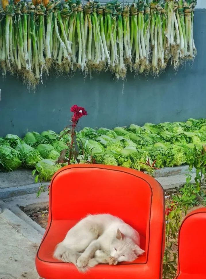 而在城里,城市化的脚步无法阻挡东北人晒菜的执念,你就能看到东北人在你能想到的一切地方铺满了大白菜。