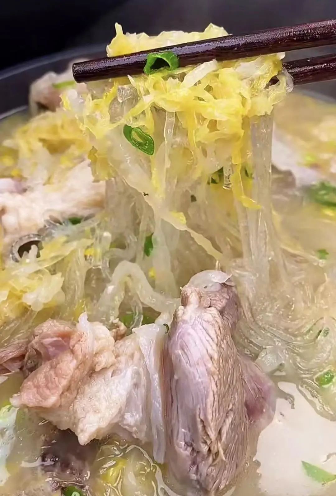 首当其冲的就是酸菜猪肉炖粉条,脆嫩的酸菜和猪肉搭在一起,既增香又开胃,酸酸辣辣,东北人一阵不吃就浑身难受!