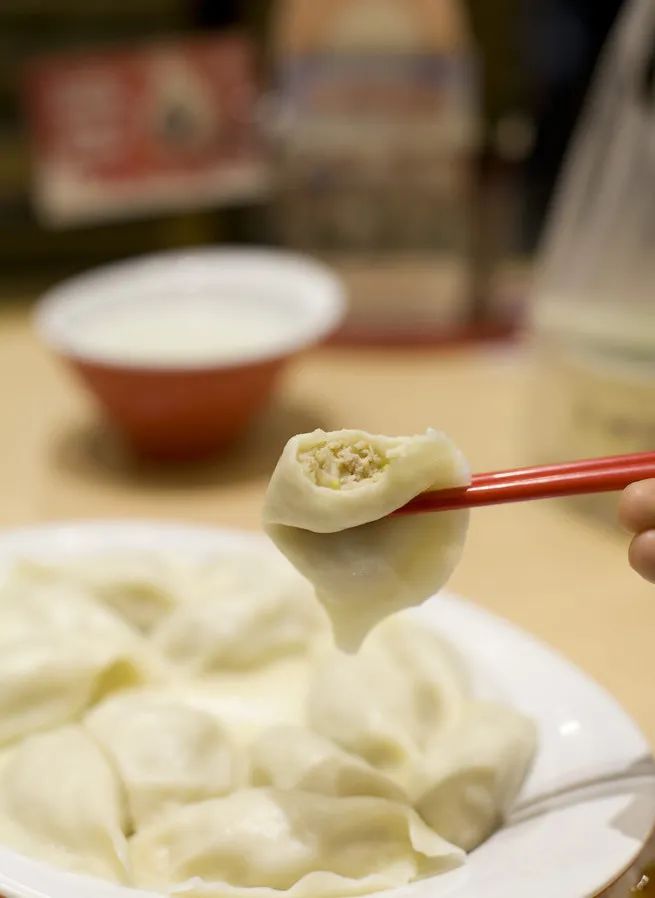 当然还有连外乡人都魂牵梦绕的东北酸菜饺子,皮薄馅儿大,白白胖胖地卧在盘子里看着就可爱。