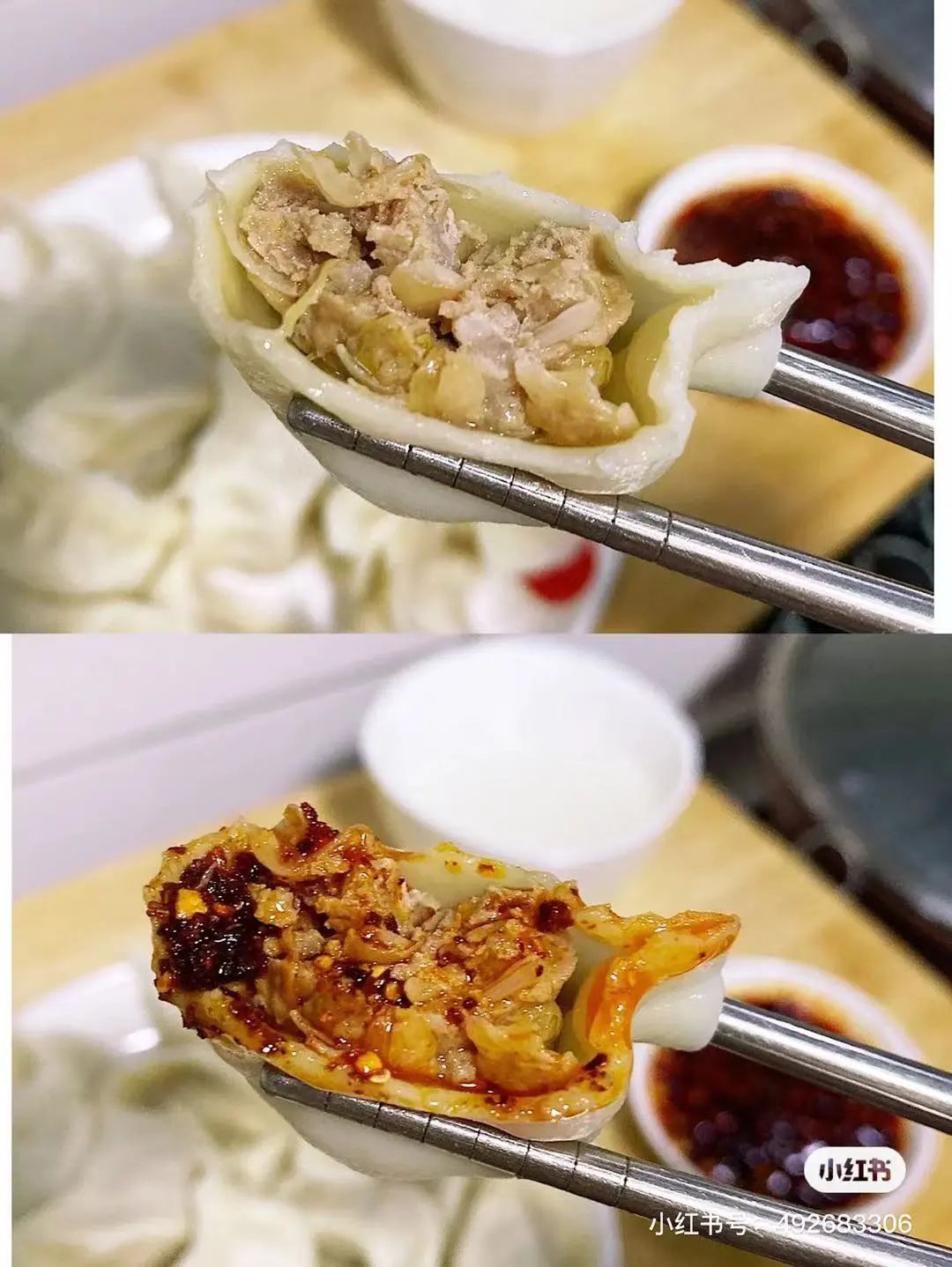 一口咬开还会淌汁儿,酸爽好吃!只想感叹,谁会拒绝酸菜水饺呢?