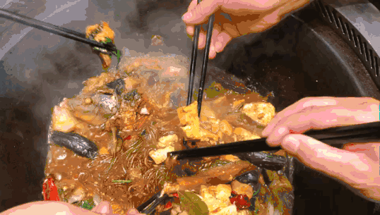 常见的是各类鱼肉搭配上茄子、番茄、土豆,炖得酥烂,再加上秘制小料儿,真的要香迷糊了!