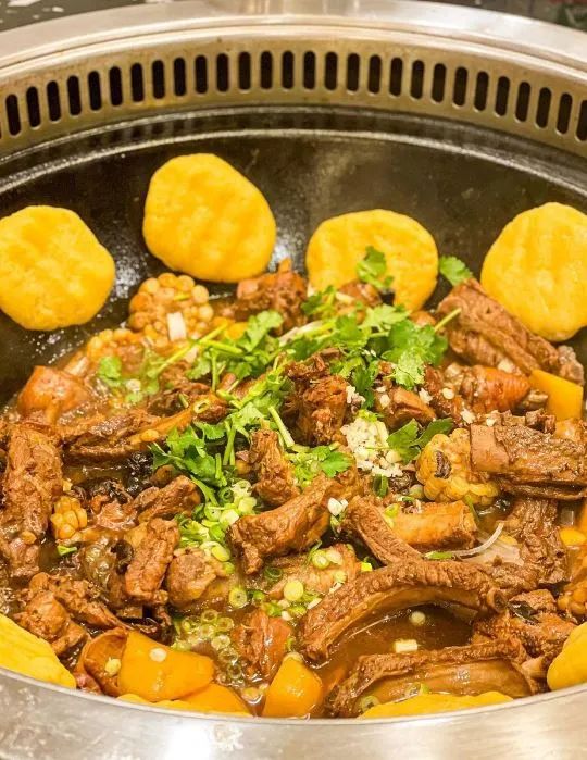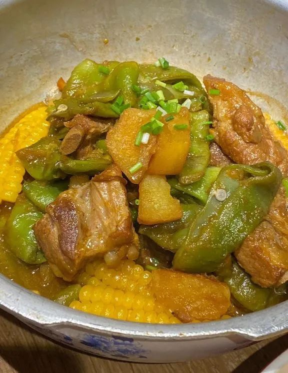 又或者炖菜锅边贴上一圈玉米面饼子,被锅子烤得金黄喷香,配着菜吃堪称一绝。