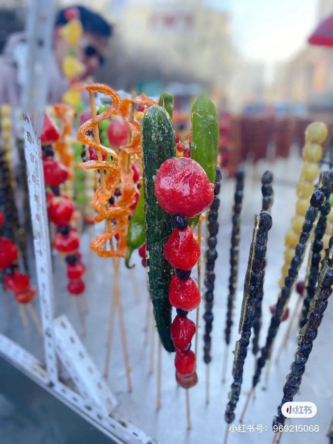 在东北万物皆可糖葫芦,水果已经不稀奇。