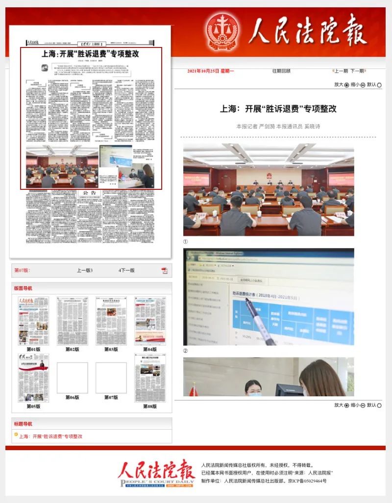 5月31日,上海高院下发《关于深入开展“胜诉退费”专项整改活动的通知》,决定自6月1日起在全市法院开展为期一个月的“胜诉退费”专项整改活动。同时,上海高院公布《上海法院“我为群众办实事”项目清单》,开展“胜诉退费”专项整改活动位列十大实事项目之首。