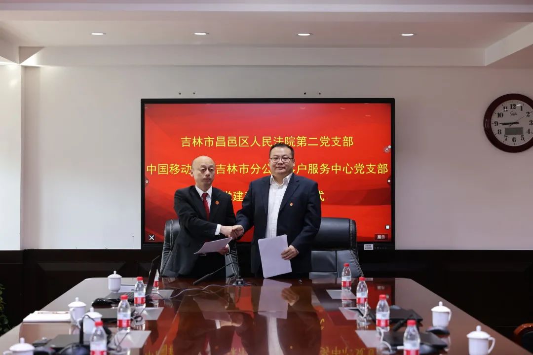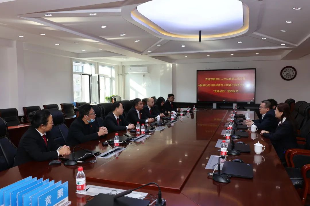 为落实新时代党的建设总体要求,充分发挥基层党支部的主体作用,激发党员的活力,2021年10月22日吉林市昌邑区人民法院第二党支部与中国移动通信集团吉林有限公司吉林市分公司客户服务中心党支部举行了“党建和创”签约仪式。