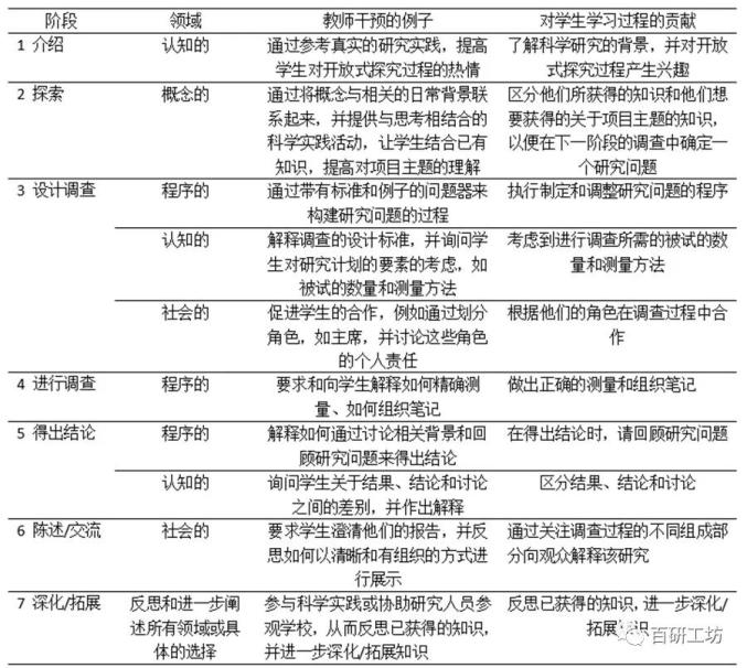 通过参考真实的研究实践,学生们获得了兴趣,并形成了认知上的理解,像科学家那样研究一个真实的问题。尽管在当前阶段,大多数教师没有提供真实的科学实践的详细描述,但他们能够在随后的阶段参考这些实践。