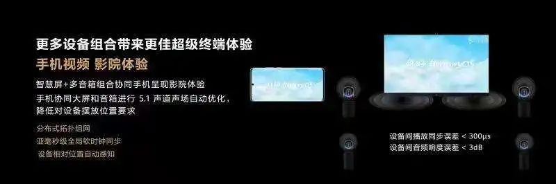 HarmonyOS 可以让你的手机、智慧屏、四台音响组成一个 6 台设备的超级终端。