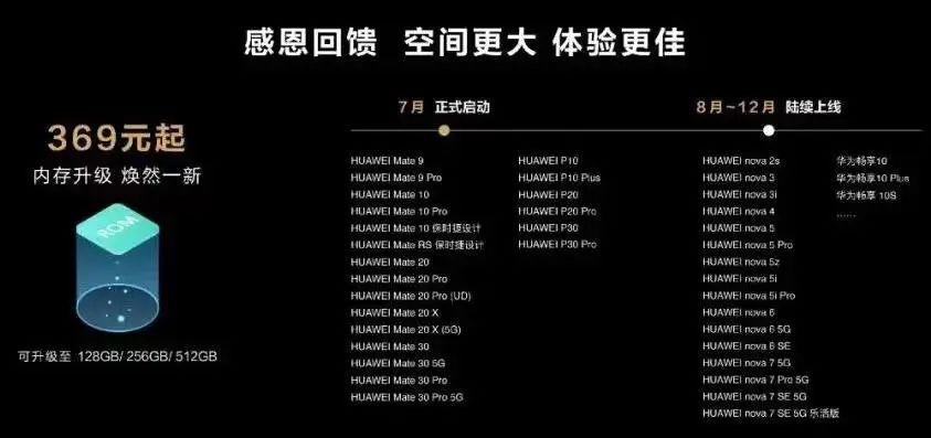 你如果怕旧手机内存不够,华为还在今年 7 月份弄了个内存升级服务,最早支持到 Mate 9,而且仅要 369 元。
