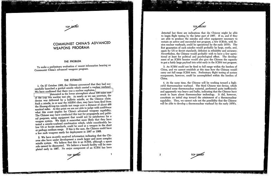 ▲ 因中国“两弹结合”成功,美情报系统编撰的《国家情报评估》特刊