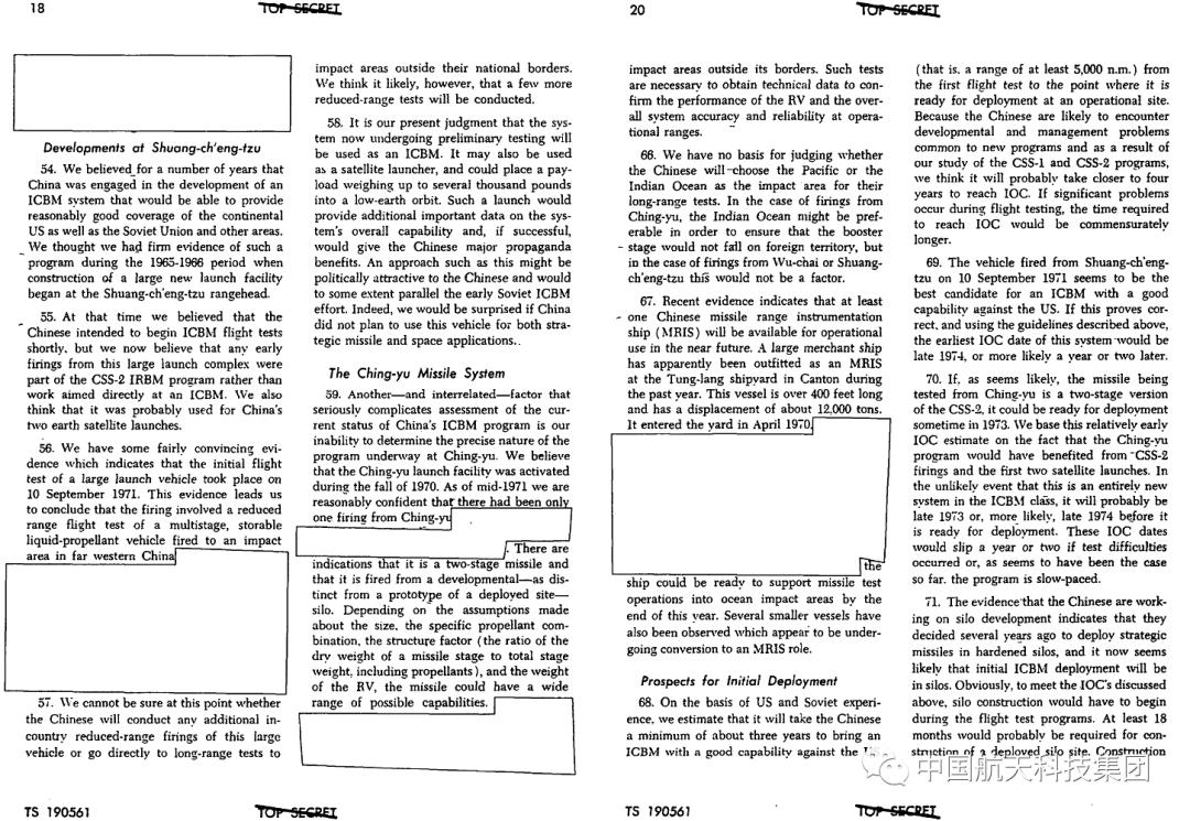 在美国情报系统当年10月28日提交的《国家情报评估》之中国战略打击武器专题报告中,可以看到对9月10日试验的描述。综合多方面的信息,一般美方获取主要大国试射战略导弹这类突发重要情报后,可能先通过简报等形式提交高层;到写入《国家情报评估》时,可能已经过多轮分析研判了。