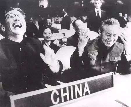 ▲ 中国代表团成员在联合国会场上开怀大笑