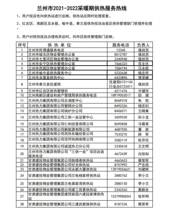 为更好地为市民提供服务,10月25日,兰州市供热服务中心公布了2021至2022年采暖期364个服务热线。