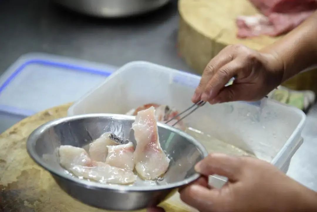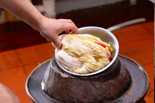 来到沥江生态园的后厨,放在门口的几口大缸引人注目,据厨师李结华介绍,这些缸里腌制的便是制作酸菜鱼用的酸菜。“将大白菜、豇豆、胡萝卜等放入缸中,经过大约45天的腌制、发酵后就可食用了。”李结华说道,“酸菜鱼里的鱼首选3斤左右的黑鱼,只取鱼的中段,这样能保证每一片鱼肉的口感嫩滑。”李结华透露,这道沥江酸菜鱼最大的亮点就是汤底,他选用熬制两个小时的老母鸡汤作为汤底,“吃完一片鱼再喝一口汤,鲜得眉毛掉下来。”