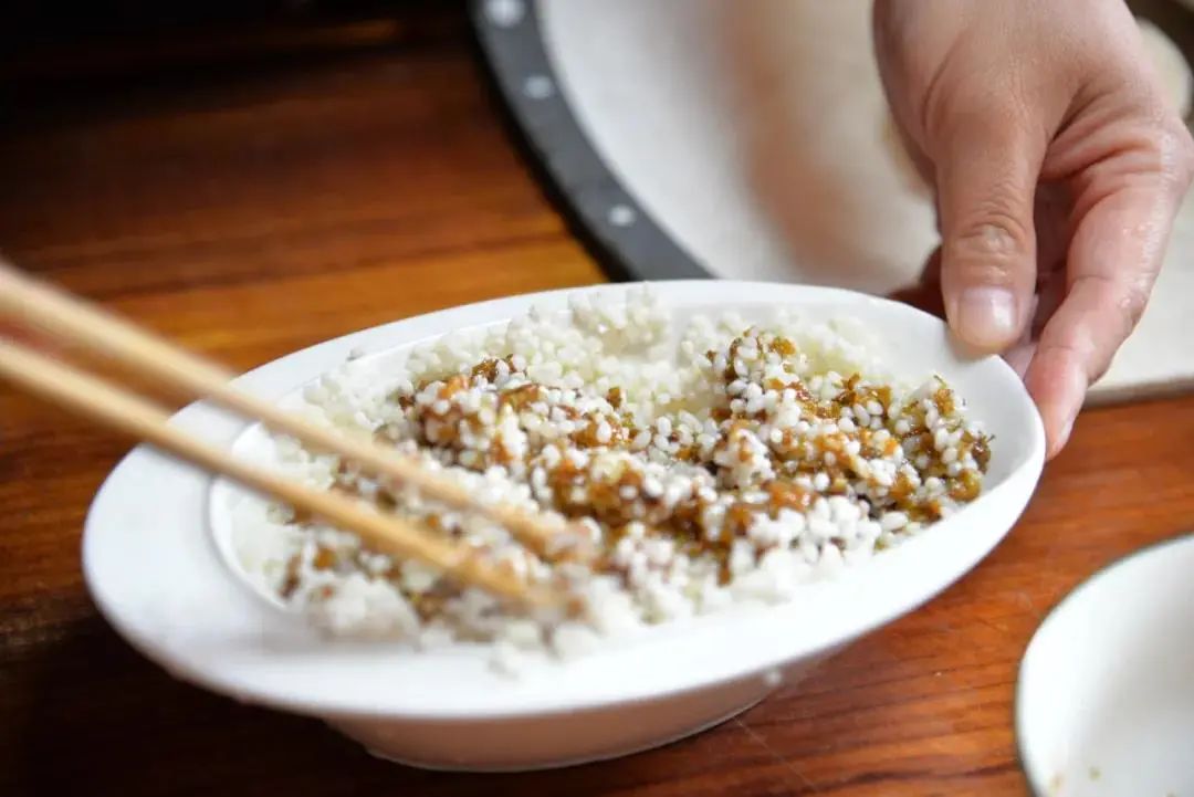 在浸泡的糯米中加入自制的桂花蜜。