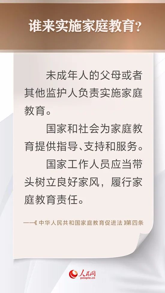 第四条 未成年人的父母或者其他监护人负责实施家庭教育。