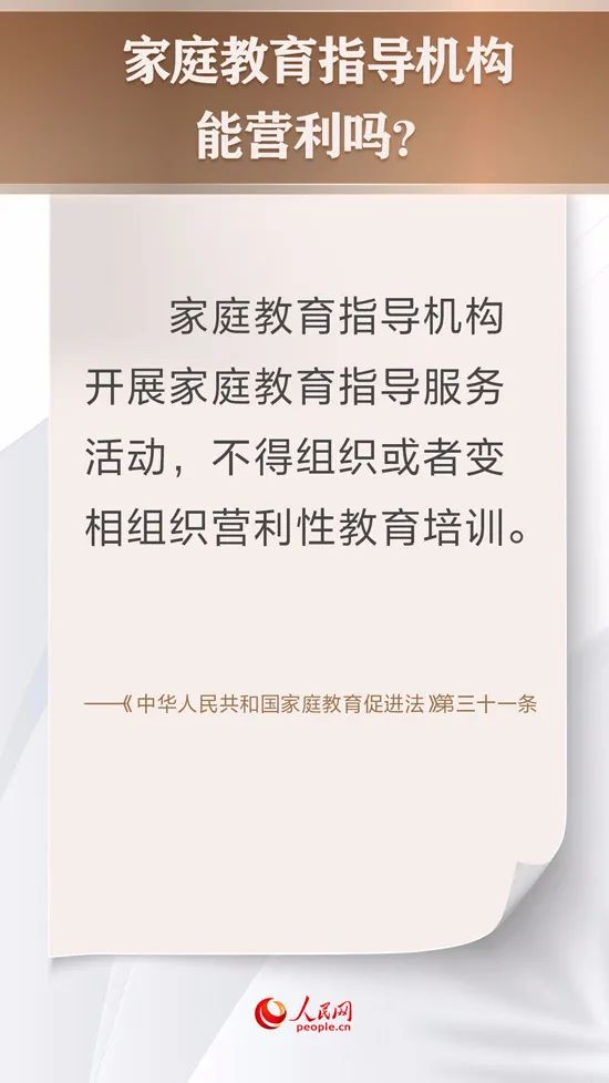 第三十一条 家庭教育指导机构开展家庭教育指导服务活动,不得组织或者变相组织营利性教育培训。