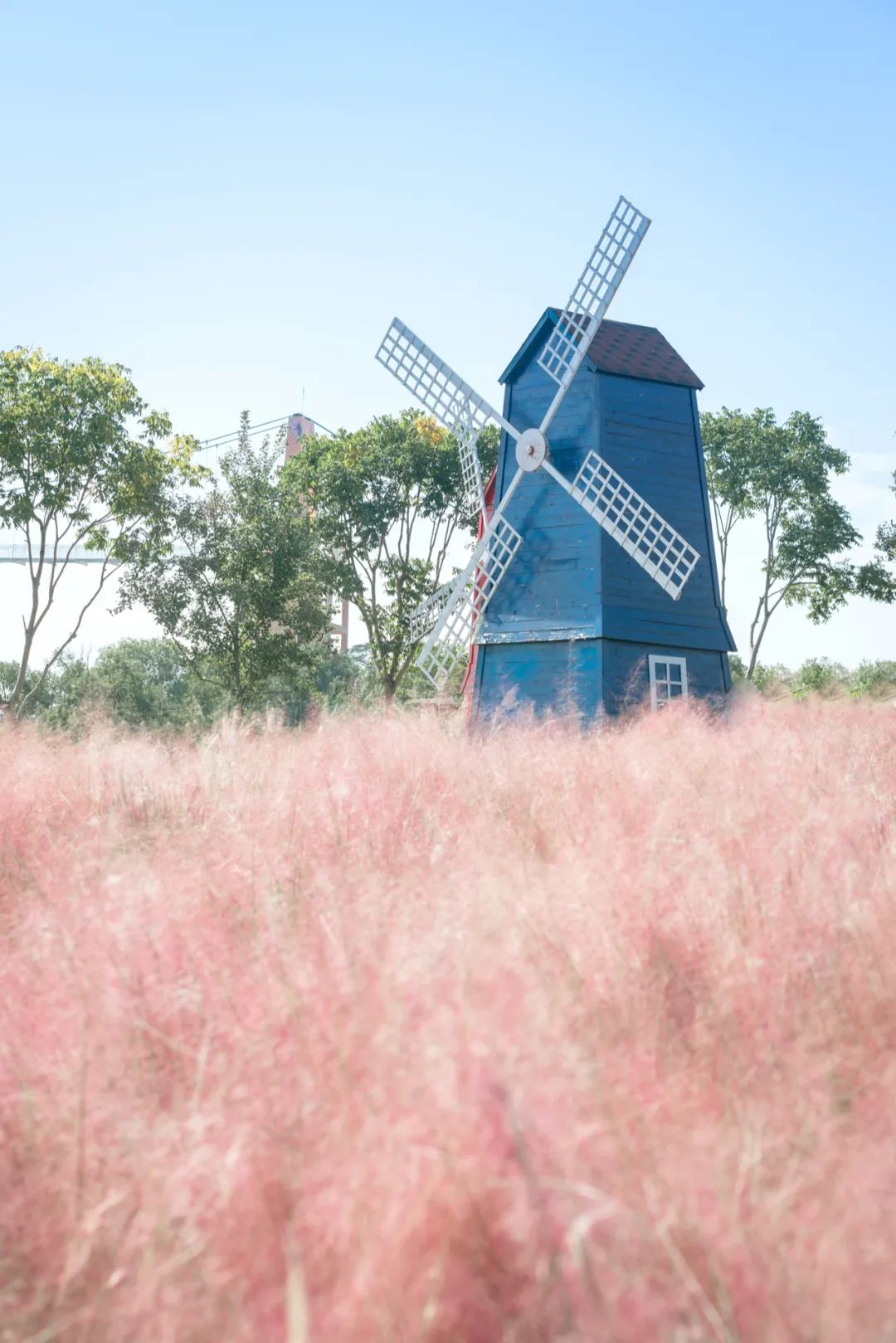 近100亩的粉黛乱子草,有12个足球场那么大,不管是乘坐小火车穿梭花海,还是走到花丛边借位拍大片,都有满满仙气。