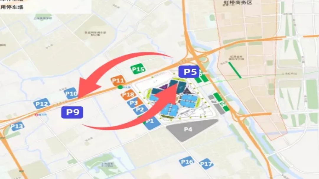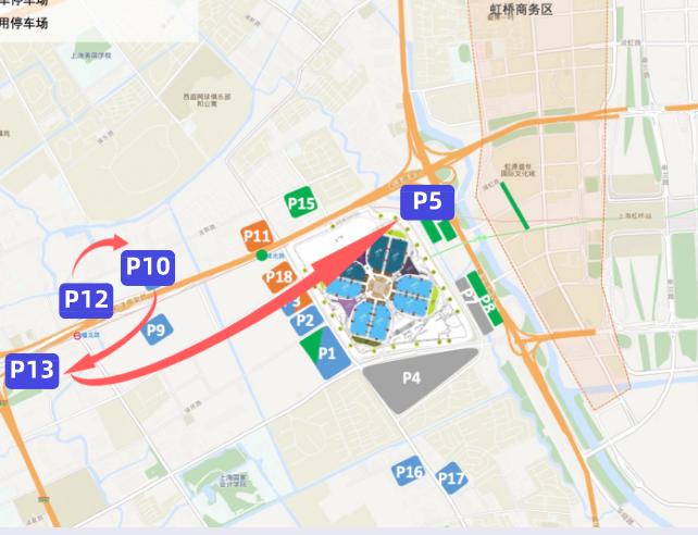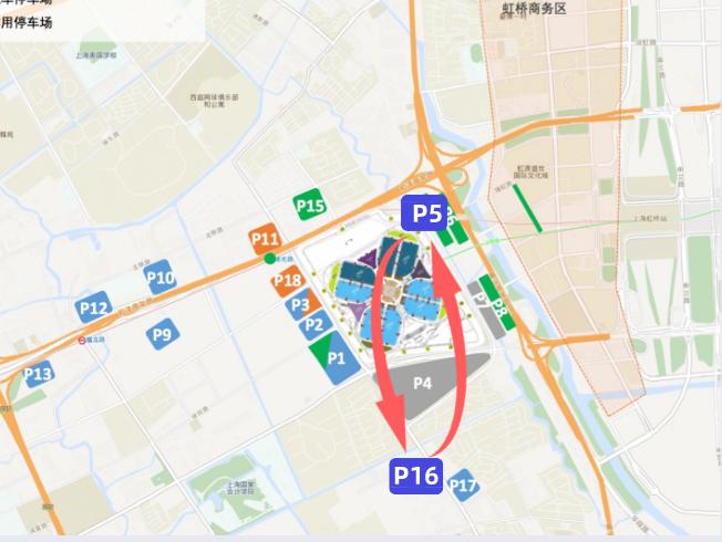 进博会举办期间,提供11处临时停车场、16处虹桥商务区停车场(库)供参展商客预约停车。