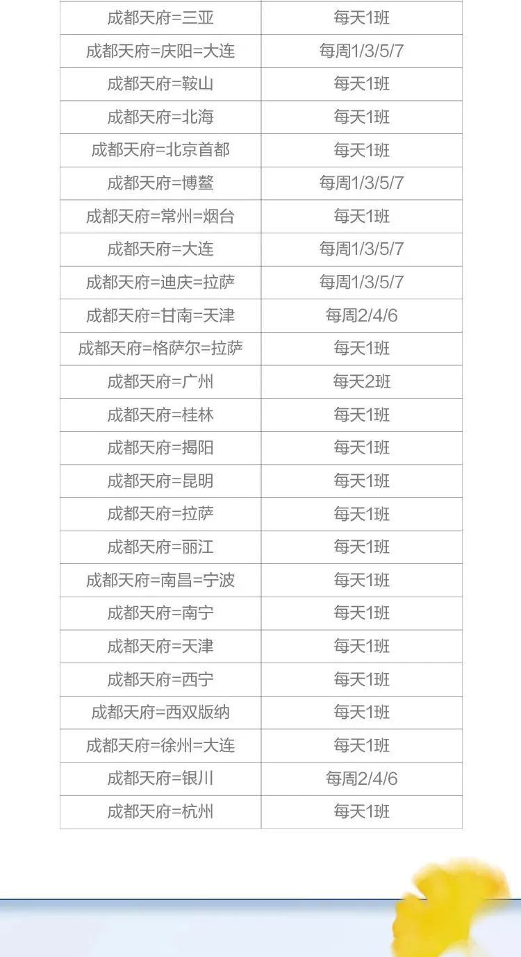 长龙航空转场至成都天府国际机场运营后的航班时刻
