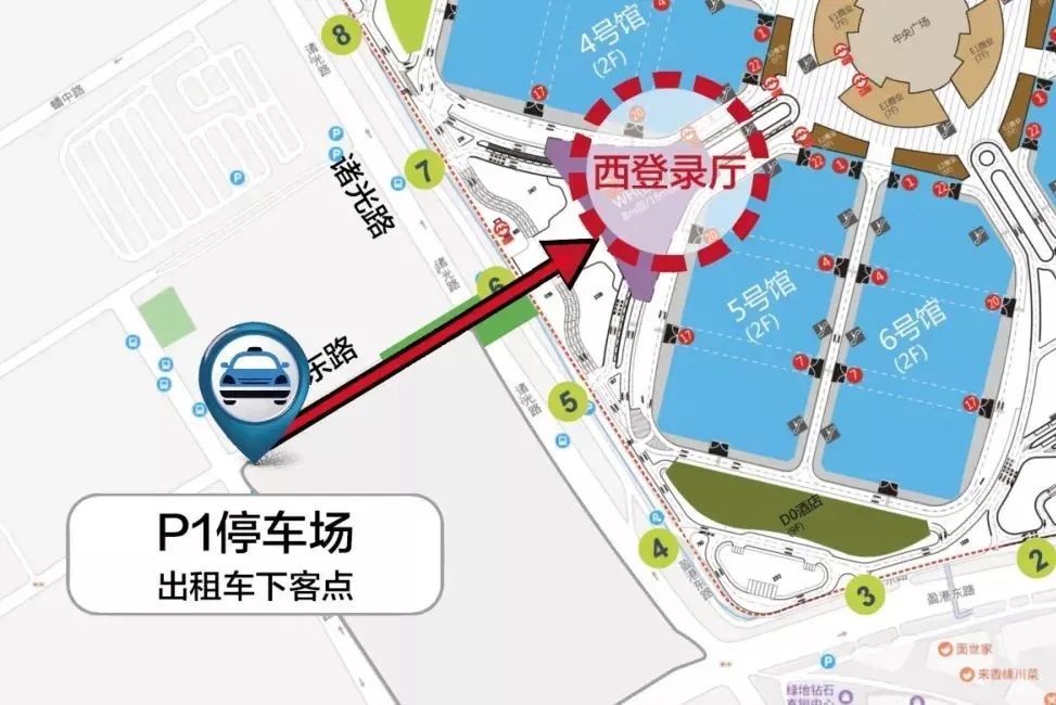 国家会展中心东侧P6停车场设置出租汽车上客点。