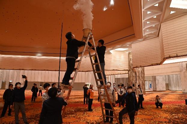 张茂磊邀请济州消防署验收人员提前常驻现场,并聘请韩国当地消防协力单位,联合消防署、消防监理、各施工单位及协力单位消防代理人成立消防TF队,建立了高效畅通的沟通机制。他个人也能用流利的韩语与相关各方沟通交流,整个消防验收过程中全程参与,过程指出的问题第一时间安排整改。针对消防排烟TAB(Test.Adjust.Balance)超高的标准要求,张茂磊成立三个调试组24小时不间歇调试。
