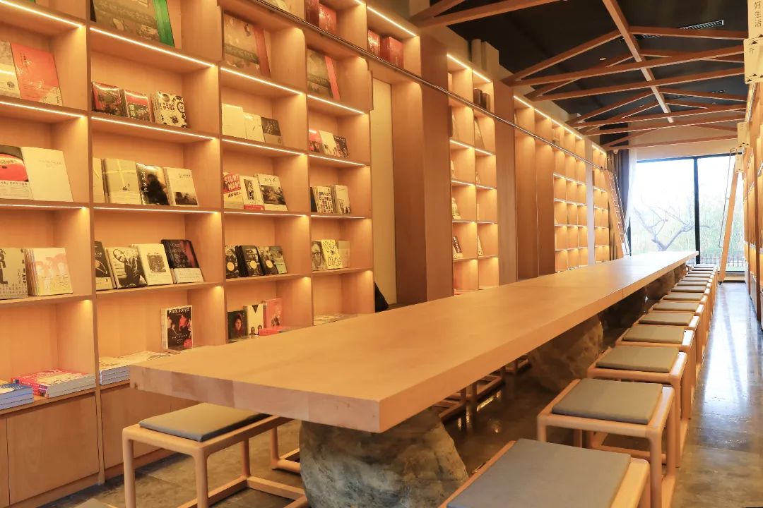 又见山由公共阅读区、共享区、文创区、包间区构成,集阅读与文创、轻食与休憩多种功能于一体。现存各类书籍近4000册,以阅读体验式书店为主要经营形态,打造了以主题空间体验为基础、以产品运营体验为核心、以服务互动体验为增值的“三位一体”复合体验模式。这里为员工和游客提供读书交流、亲子互动、讲座培训、文创展示、创业孵化等提供禅意雅致的场地,也搭建了独特人文关怀的互动平台。