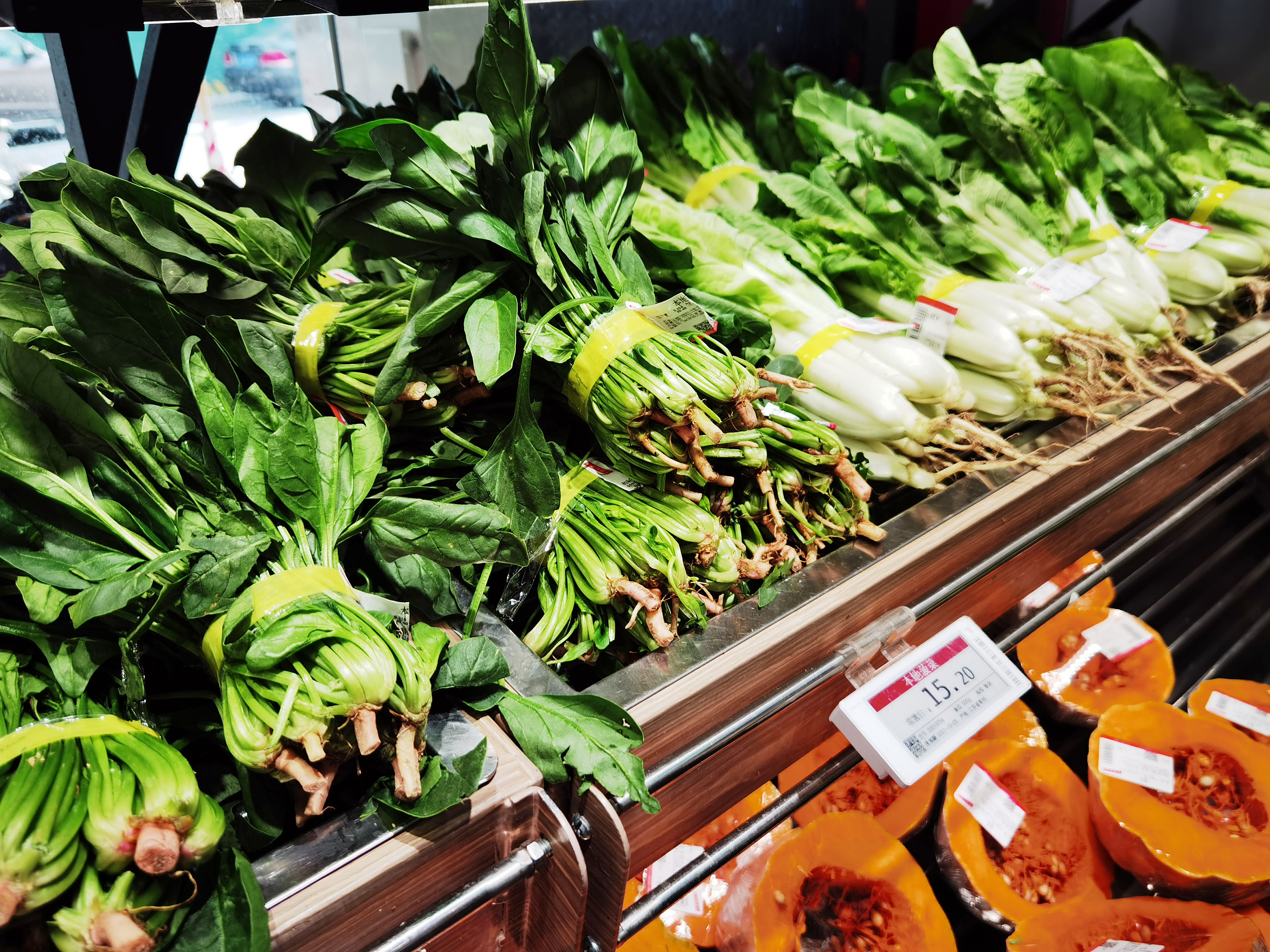 在北京市西城区另一家超市,苋菜、空心菜13.98元一斤,水菠菜11.98元一斤,奶油生菜9.58元一斤,小白菜8.98元一斤,水萝卜、香芹7.98元一斤。