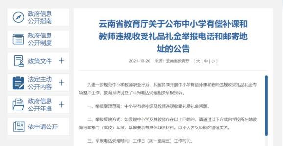 原标题:《举报电话公布!德宏严查中小学有偿补课和教师违规收礼》