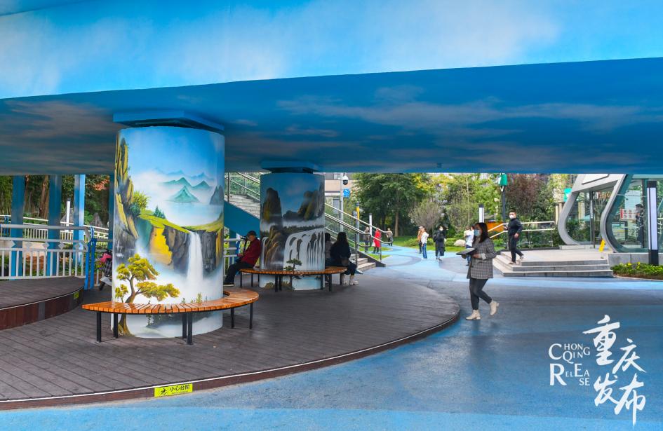 据负责该片区的园林景观设计师张凤介绍,结合原来两边石壁的高差特点,特以“山水重庆”“老街印象”为主题喷绘壁画,希望通过明亮色系的彩绘和连绵起伏的立体水墨画,再融合巴渝传统文化与现代时尚元素,让游客市民们感受“一半山水一半烟火”的山城文化特色与魅力。