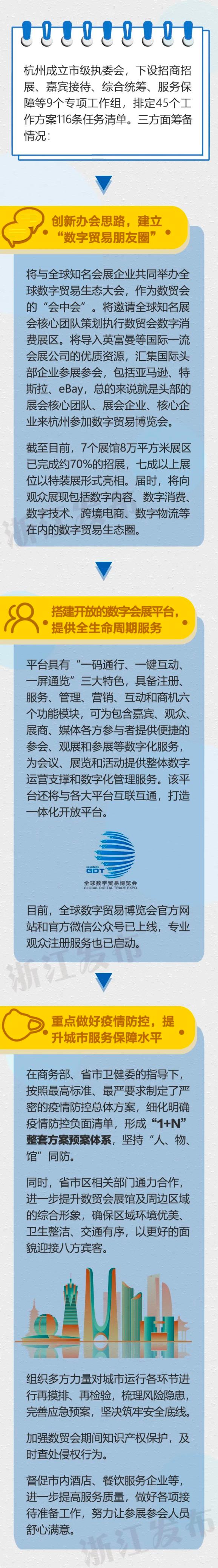 首届全球数字贸易博览会定在杭州举办,胡伟表示,杭州将从以下3方面积极承接数贸会的溢出和带动效应: