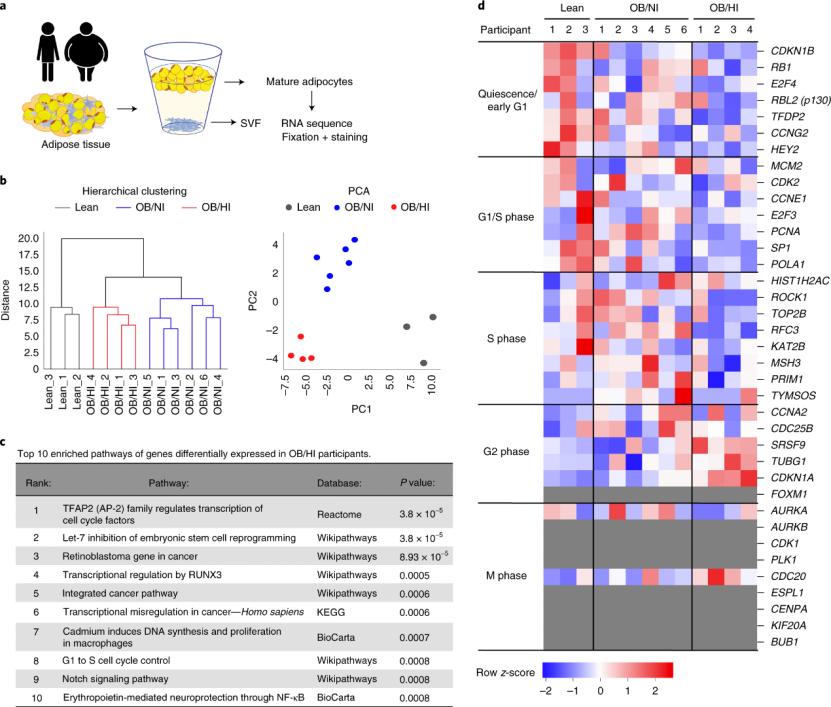通过无监督聚类分析,研究人员惊奇的发现,肥胖个体中差异基因居然主要富集在细胞周期进入及进展相关基因,后续qPCR检测也验证了这一结果。