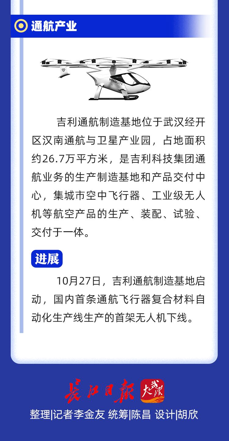 吉利通航制造基地位于武汉经开区汉南通航与卫星产业园,总占地面积约26.7万平方米,集城市载人飞行器、无人机等航空产品的研发、生产、装配、试验、交付于一体,是吉利科技航空业务的生产制造基地和产品交付中心。