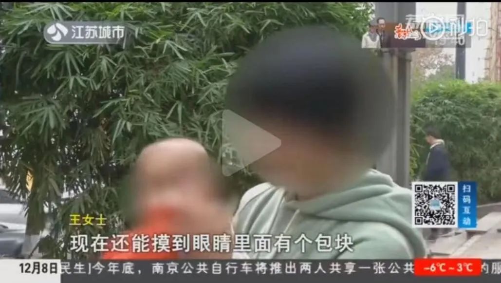 然而,令王女士没有想到的是,"头盔"佩戴一个月不到,就出现了问题。"宝宝左边的眼睛被压住了,能摸到眼睛里面有个包块。向商家反映后,他没有叫我抱着孩子过来复查或者调整,而是通过邮寄的方式对头盔进行打磨。"