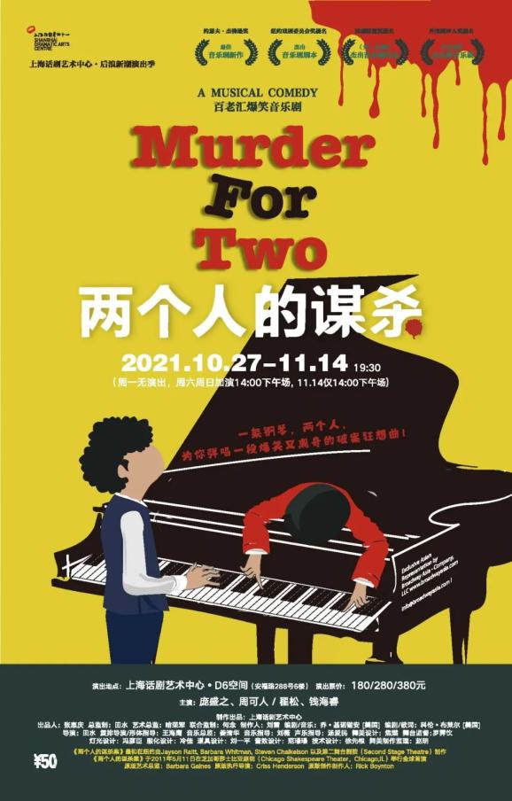 2016年首度引进便获得强烈反响的百老汇爆笑悬疑音乐剧《两个人的谋杀》(Murder for Two)中文版于10月27日晚载誉回归上海话剧艺术中心·D6空间,当天晚上,钱海睿、翟松率先登上舞台。