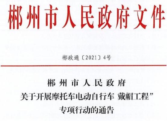 为维护道路交通安全秩序,有效预防摩托车、电动自行车交通事故发生,确保人民群众生命财产安全。根据《中华人民共和国道路交通安全法》、《湖南省实施<中华人民共和国道路交通安全法>办法》、《湖南省电动自行车管理办法》、《中华人民共和国道路交通运输条例》等法律法规和规章的有关规定,市人民政府决定从即日起,在全市范围内开展摩托车、电动自行车“戴帽工程”专项整治。现将有关事项通告如下: