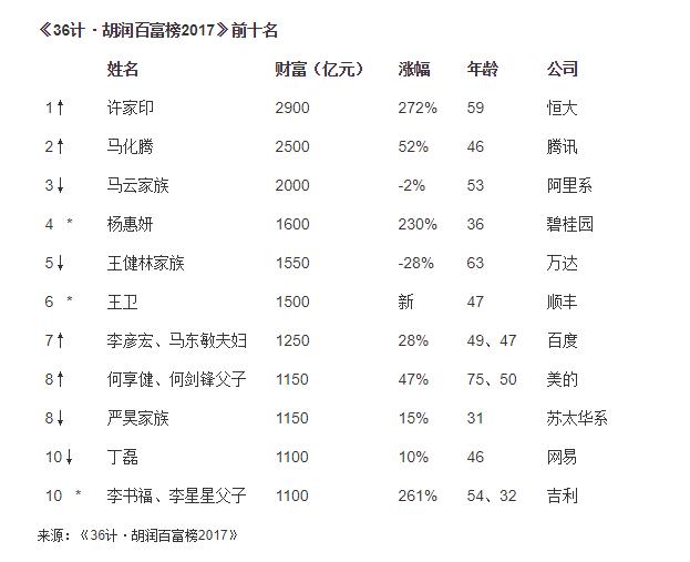 而在楼市高热的2017年,房地产行业更是包揽了前5中的3席,包括许家印、杨惠妍和王健林家族等。