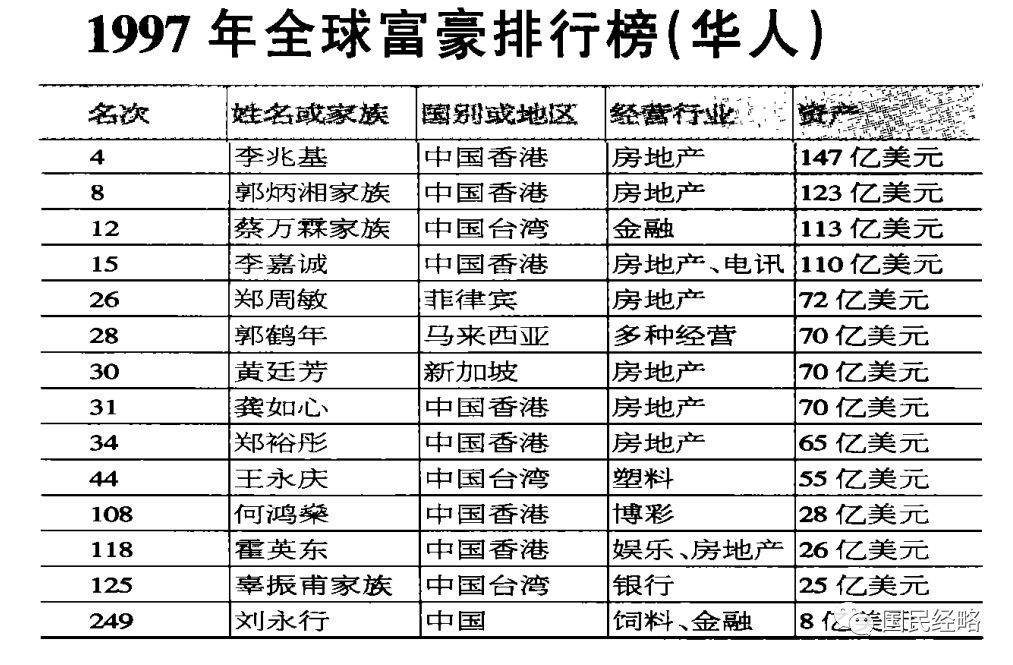 在1997年全球富豪榜中,房地产开发商占了华人富豪的半壁江山。