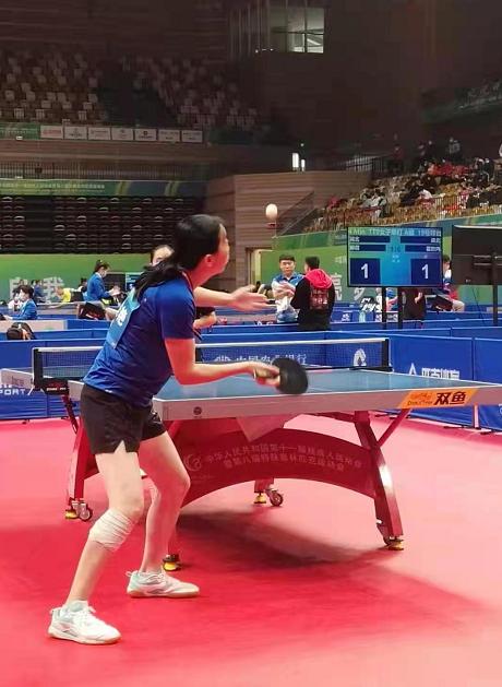 熊桂艳与队友在乒乓球TT9—TT10级女子双打中获得银牌。