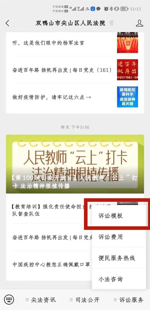 您可进入双鸭山市尖山区人民法院微信公众号,点击底部的“诉讼服务”栏目中的“诉讼模板”,里面有各种文书的模板,您可以根据实际需求下载或发送到邮箱保存,并按照文书模板撰写相关诉讼文书。