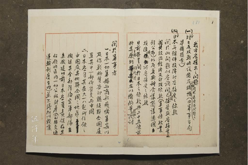 “日本无条件投降时应接受之条款”初稿首次曝光(图片来源:“中时新闻网”)