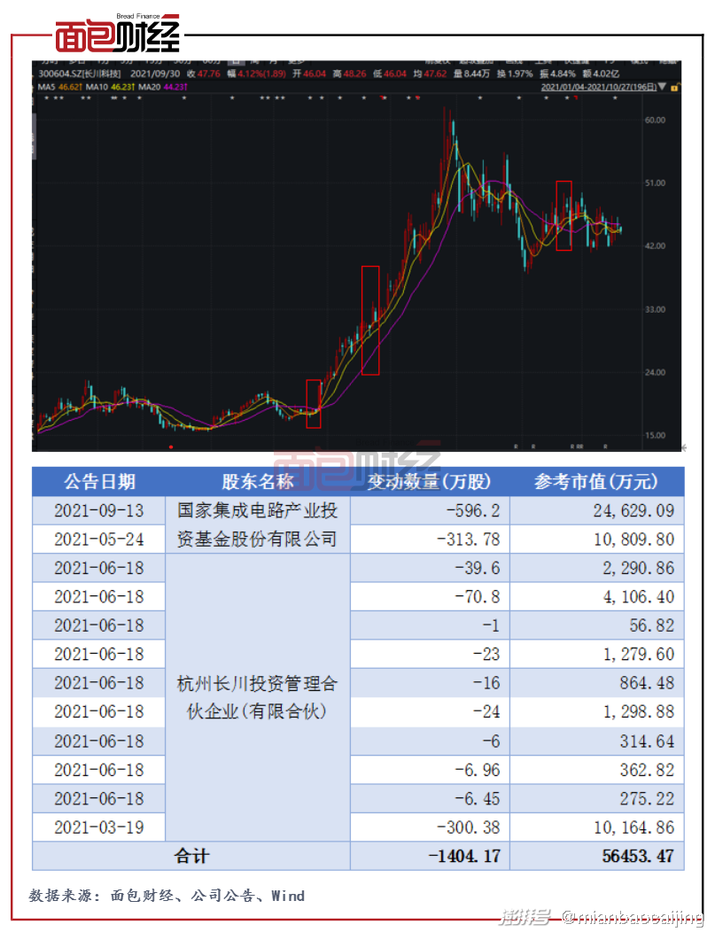 今年4月,公司曾披露2020年度利润分配预案,派发现金股利3137.91万元(约占当期归母净利润的37%),并以资本公积金每10股转增9股。而在此前,公司曾披露股东长川投资、国家集成电路产业投资基金(以下称“大基金”)的减持计划,分别计划在6个月内减持不超过193.81万股、627.58万股。