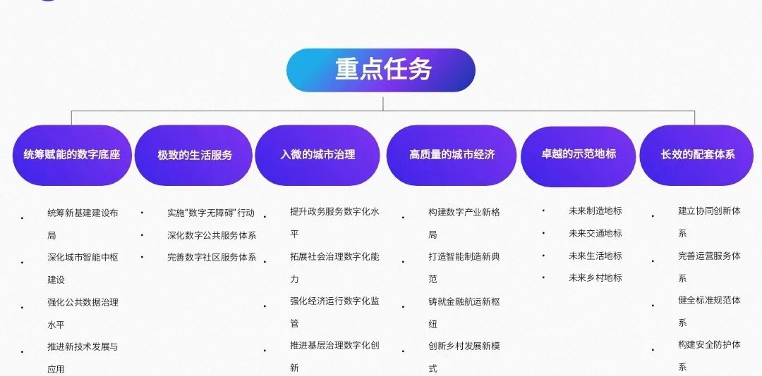 为全面落实党中央、国务院关于建设网络强国、数字中国、智慧社会的战略部署,助力浦东打造社会主义现代化建设引领区,《规划》聚焦经济数字化、生活数字化、治理数字化三大领域,提出了要基本建成智慧治理精细入微、智享生活极致入心、智能经济创新驱动、政社共建共治共享的智慧化开放发展格局,实现一个窗口、两个面向、三大典范、四大引领的“一二三四”发展目标。