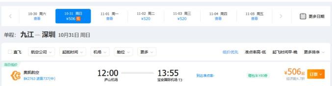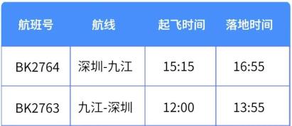 深圳至九江航线由奥凯航空执飞