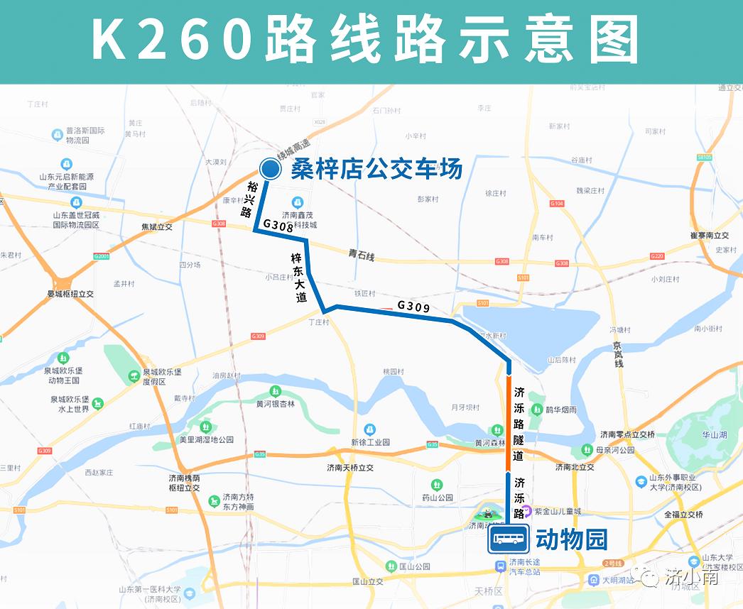 10月29日起,济南公交开通试运行K260路。据了解,该线路是“万里黄河第一隧”通车后的首条公交线路。K260路由桑梓店公交车场开往动物园,主要途经裕兴路、308国道、梓东大道、309国道、济泺路隧道、济泺路。沿途设置桑梓店公交车场、裕兴路鑫源大道、裕兴路华泰路、大马庄村、裕兴化工、沙李村、桑梓店街道办事处西、桑梓店街道办事处南、仓上村、仓上村南、309国道梓东大道、小屯村、铁匠村、桑梓店老屯村、黄河冠世花园、王家镇村、济泺路隧道北、大坝、泺口服装城、动物园站点。(山东商报·速豹新闻网记者 白鑫燚)