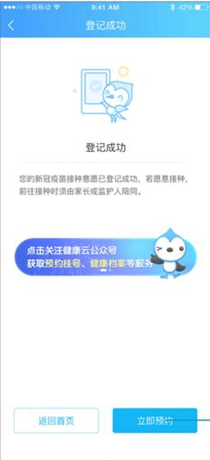 家长(监护人)登记成功生成接种条码后,带上相关证件及孩子的接种证明在指定时间前往接种点接种。