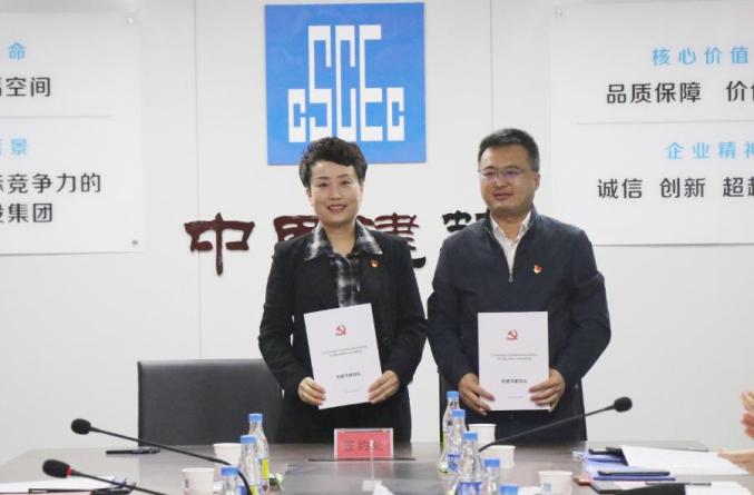 河南省建设工程质量监督总站党支部书记吴小红,中建七局安装公司副总经理兼市政分公司党总支书记、总经理常红庆分别介绍双方支部建设情况,并签订党建共建协议。