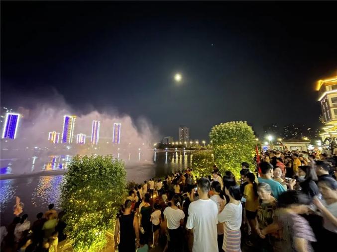 坐落于国家5A级旅游区庐山西海风景区,全长500米,总建筑面积2万余平方米,总投资45亿元,设有地方名优特产、非遗展演、特色名宴、全国民间美食、茶楼、酒吧等休闲空间,更有全天候的行为艺术表演、地方戏曲和大型情景真人灯光演艺秀《西海追梦》等演艺内容,形成了一个吃、喝、玩、乐、游、娱、购等沉浸式特色园区与灵动山水完美结合的美食休闲文旅度假园区。2021年6月试营业以来,先后举办过美食评选、主题花灯展、国企演艺秀等活动,共接待游客30余万。