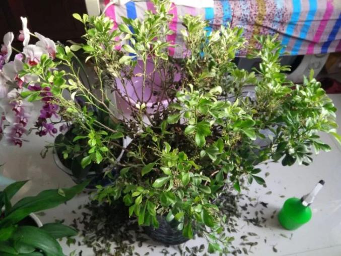 为了保证茉莉顺利过冬,在11月就要剪掉花苞和太嫩的新生枝叶,保存营养抗寒,因为嫩枝和花苞是最容易冻伤的。剪下来的花枝,可以插水瓶里养几天,一样能欣赏。